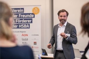 Der diesjährige Jahresempfang des Vereins der Freunde und Förderer der HSBA war ein Ereignis ganz besonderer Art. Zum allerersten Mal präsentierte nicht nur ein HSBA-Alumnus die herausragenden Ergebnisse seiner Dissertation, sondern es waren auch Vertreter:innen aller studentischen Komitees der HSBA vor Ort mit dabei, um ihr vielseitiges Engagement für die Studierendenschaft und die Hochschule für alle Mitglieder des Vereins, und solche, die es werden wollen, sichtbar zu machen.