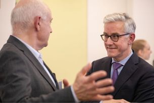 Nach einer herzlichen Begrüßung durch Mattias Schmelzer, den Vorstandsvorsitzenden des Vereins, sowie CEO und Sprecher des Vorstands der KPMG AG Wirtschaftsprüfungsgesellschaft, konnten sich alle Anwesenden am herbstlich dekorierten Buffet stärken, bevor Dr. Hans Jaich mit seinem inspirierenden Vortrag begann. Darin beleuchtete er die Auswirkungen unternehmerischer Nachhaltigkeit auf das private und öffentliche Verhalten von Mitarbeitenden, die er in einer Reallaborstudie im eigenen Unternehmen untersuchte. Seine Motivation: einen Beitrag zur sozial-ökonomischen Transformation leisten. Für seine Forschung und die daraus resultierenden Impulse im Bereich des nachhaltigen Tourismus wurde das Familienunternehmen von Hans Jaich 2023 u.a. mit dem ersten Platz des Deutschen Tourismuspreises ausgezeichnet.